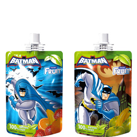 a mashed fruit (compote) packed in the flexible pouche with a spout
